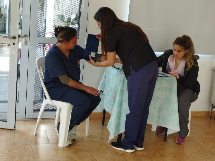 Este jueves, en el CIC Médanos, se llevó adelante una jornada de control y promoción de la salud. Durante la mañana se efectuaron mediciones de riesgo cardiovascular a pacientes en la sala de espera y posteriormente a las integrantes del grupo de gimnasia.