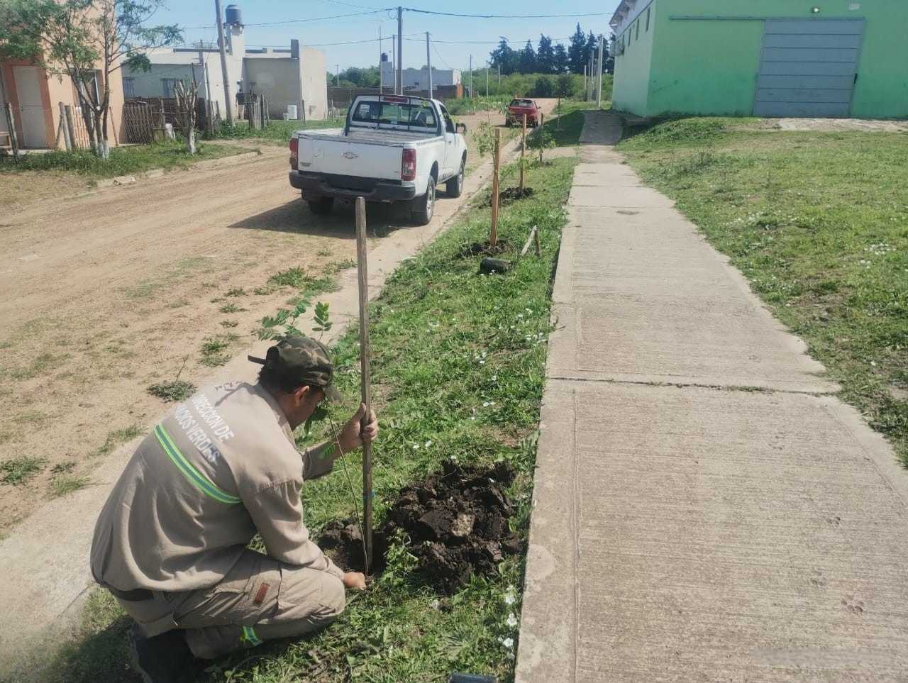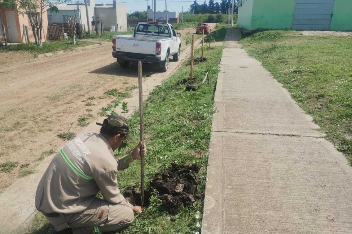 Asimismo, se continúa con el plan de plantación de especies autóctonas en distintos puntos de la ciudad, incluyendo la reposición de árboles en veredas y espacios públicos, además de mantenerse activos los trabajos de corte de pasto y podas domiciliarias en los barrios.