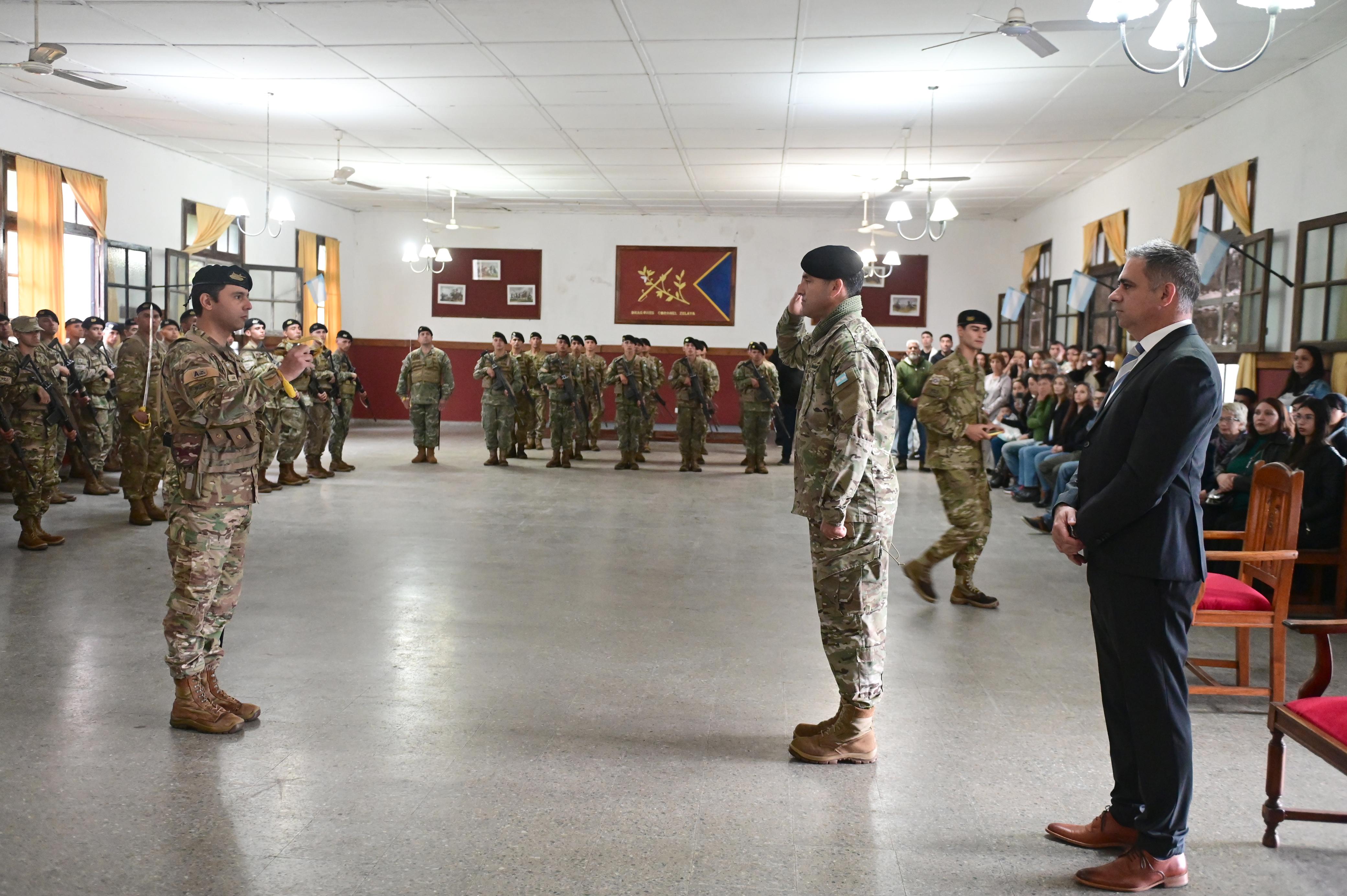 El jefe comunal destacó especialmente la incorporación de los trece nuevos soldados, a quienes consideró “patriotas que hoy comienzan una etapa de servicio al país”. También dedicó palabras de gratitud a las familias por su apoyo constante: “Acompañar este camino no es menor; es confiar y sostener una vocación noble que representa un verdadero compromiso con la Argentina”, afirmó.