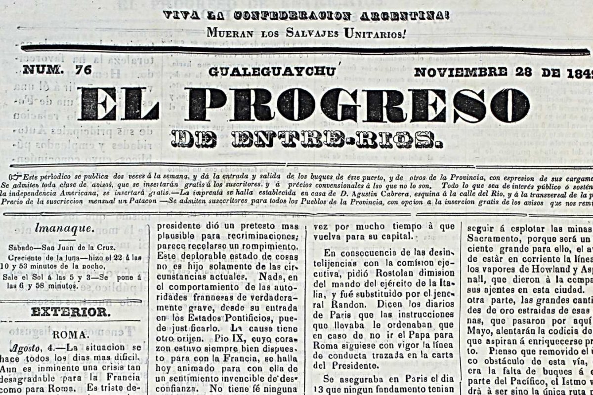 Hace exactamente 176 años, la entonces Villa San José de Gualeguaychú nombraba por primera vez sus calles, y el diario El Progreso lo comunicaba de la siguiente manera: