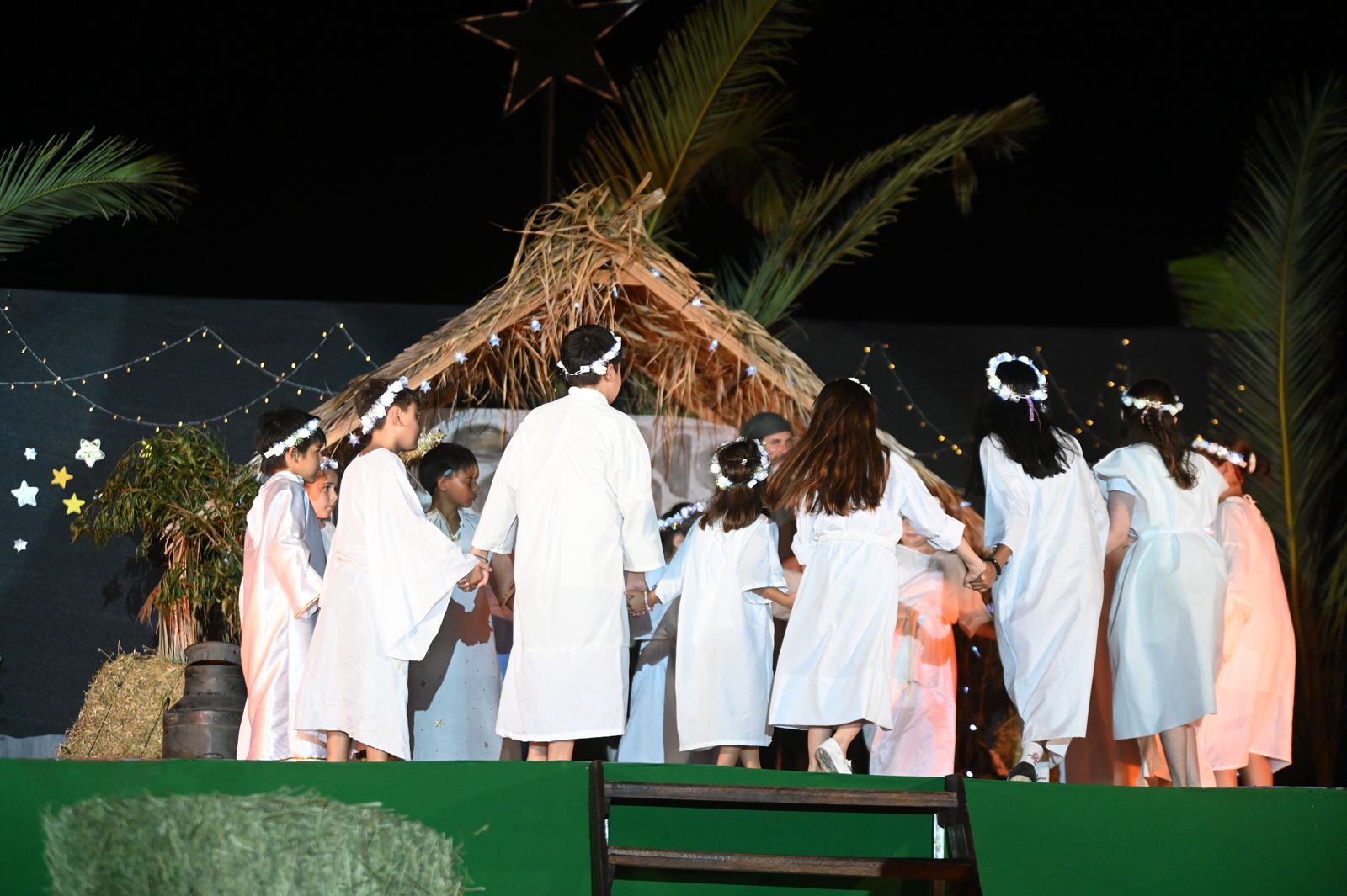 La propuesta se destacó por una puesta en escena innovadora y actual, que incorporó figuras contemporáneas vinculadas a la realidad cotidiana, como personas acompañando a un adulto mayor con bastón o en silla de ruedas, un médico o un enfermo, reforzando el mensaje vigente de amor, solidaridad y esperanza que representa el nacimiento de Jesús.