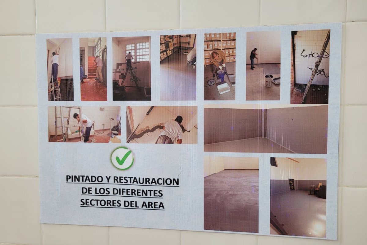 Superada esa etapa, comenzaron las obras de restauración estructural: se recuperó la escalera, se renovó la instalación eléctrica en su totalidad y se colocó nueva iluminación. También se redefinieron áreas de trabajo mediante divisiones de durlock, se pintaron todas las paredes y se colocaron techos nuevos. En paralelo, se restauraron y acondicionaron los baños de la planta baja para garantizar condiciones sanitarias dignas para el personal.