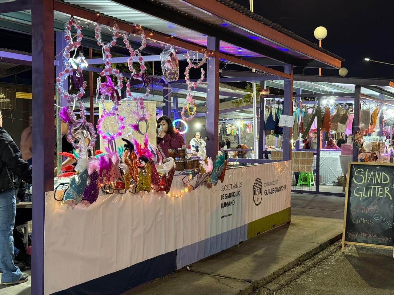Josefina, emprendedora de maquillaje artístico y glitter, señaló el crecimiento de la propuesta: “El año pasado éramos poquitos y esta parte estaba medio abandonada. Este año pintaron los puestos, hay luces y nosotras también tratamos de traer más cosas para que quede más lindo. Para nosotras es importante estar acá, esperamos todo el año para trabajar en el carnaval”.
