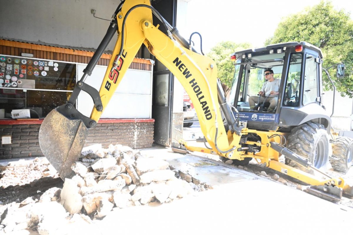 El Gobierno de Gualeguaychú, a través de la Secretaría de Desarrollo Territorial e Infraestructura, puso en marcha este lunes un plan de recuperación integral del acceso principal al destacamento de Bomberos Voluntarios de Gualeguaychú, con tareas de demolición, saneamiento de bases y posterior hormigonado.