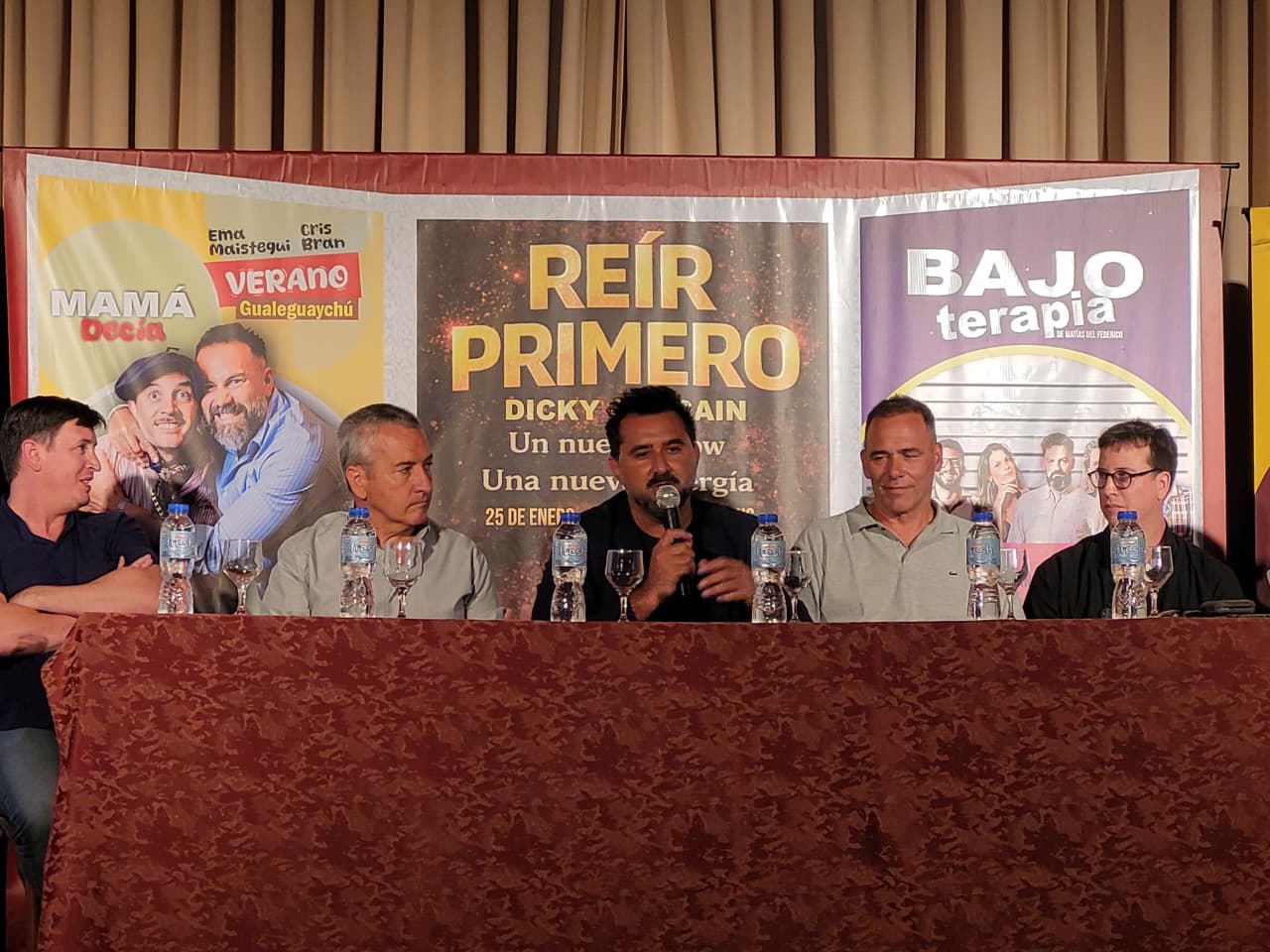 Finalmente, el actor y productor Dicky Dargain, impulsor de la temporada, agradeció el acompañamiento institucional, el apoyo de los equipos técnicos, sponsors, prensa y artistas, y presentó la programación: la temporada comenzará el viernes 16 a las 21.30 horas con “Mamá Decía”, continuará el domingo 18 a las 21.30 con “Bajo Terapia” y se completará con “Primero Reír”, todas funciones a realizarse en el salón de actos del Instituto Magnasco.