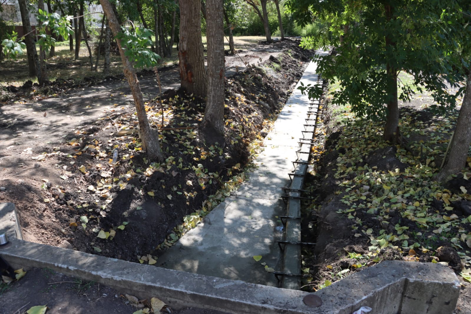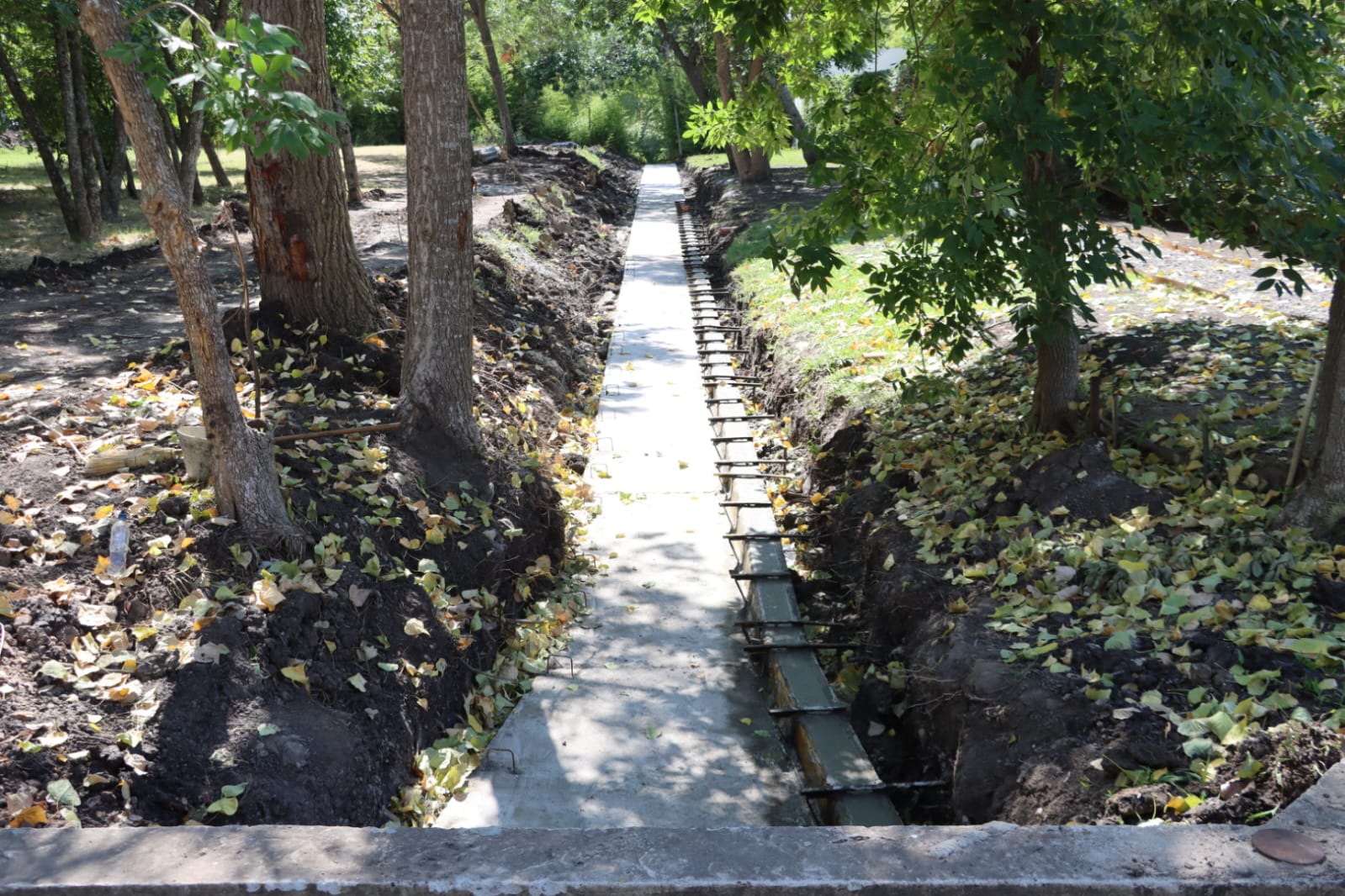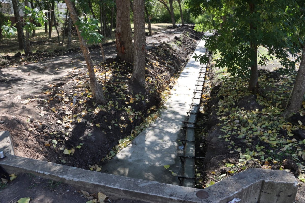 En paralelo, la Secretaría de Desarrollo Territorial e Infraestructura construye un desagüe hídirico de hormigón armado para optimizar el rendimiento de la alcantarilla existente sobre la misma traza. Esta estructura posee 60 metros de extensión, 1,30 metros de ancho y un metro de profundidad, y se implanta dentro de un espacio verde, con encauzamiento rectilíneo y secciones definidas.
