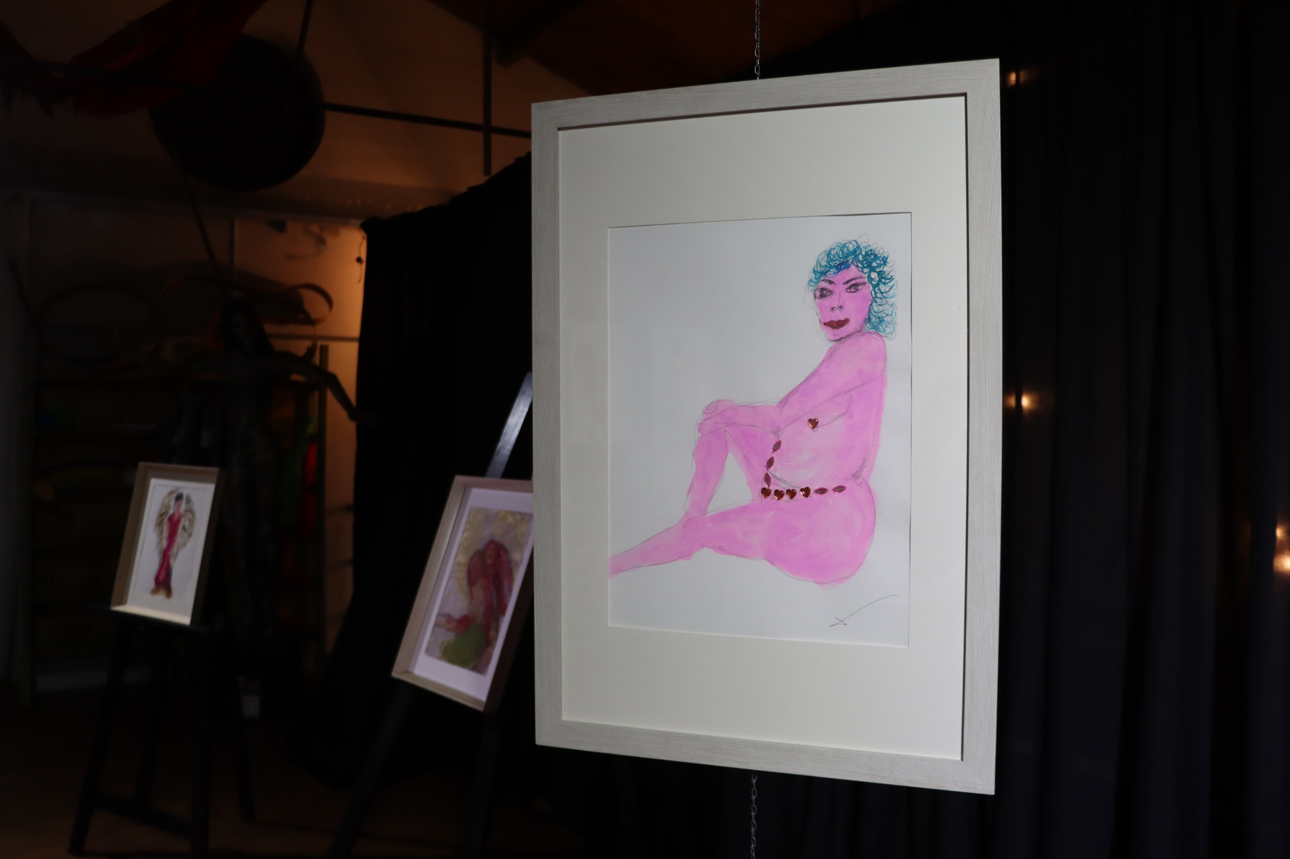“Ángeles del Carnaval” reúne obras realizadas sobre papel, a partir de modelos en vivo vestidos con trajes carnavalescos. A través de técnicas como la acuarela y el acrílico, la artista construye imágenes cargadas de narrativa, donde el cuerpo, la pasión y el rito aparecen como ejes centrales. Cada obra dialoga con el espíritu del Museo y con una de las manifestaciones culturales más emblemáticas de la ciudad, proponiendo una experiencia estética que invita a detenerse, observar y sentir.