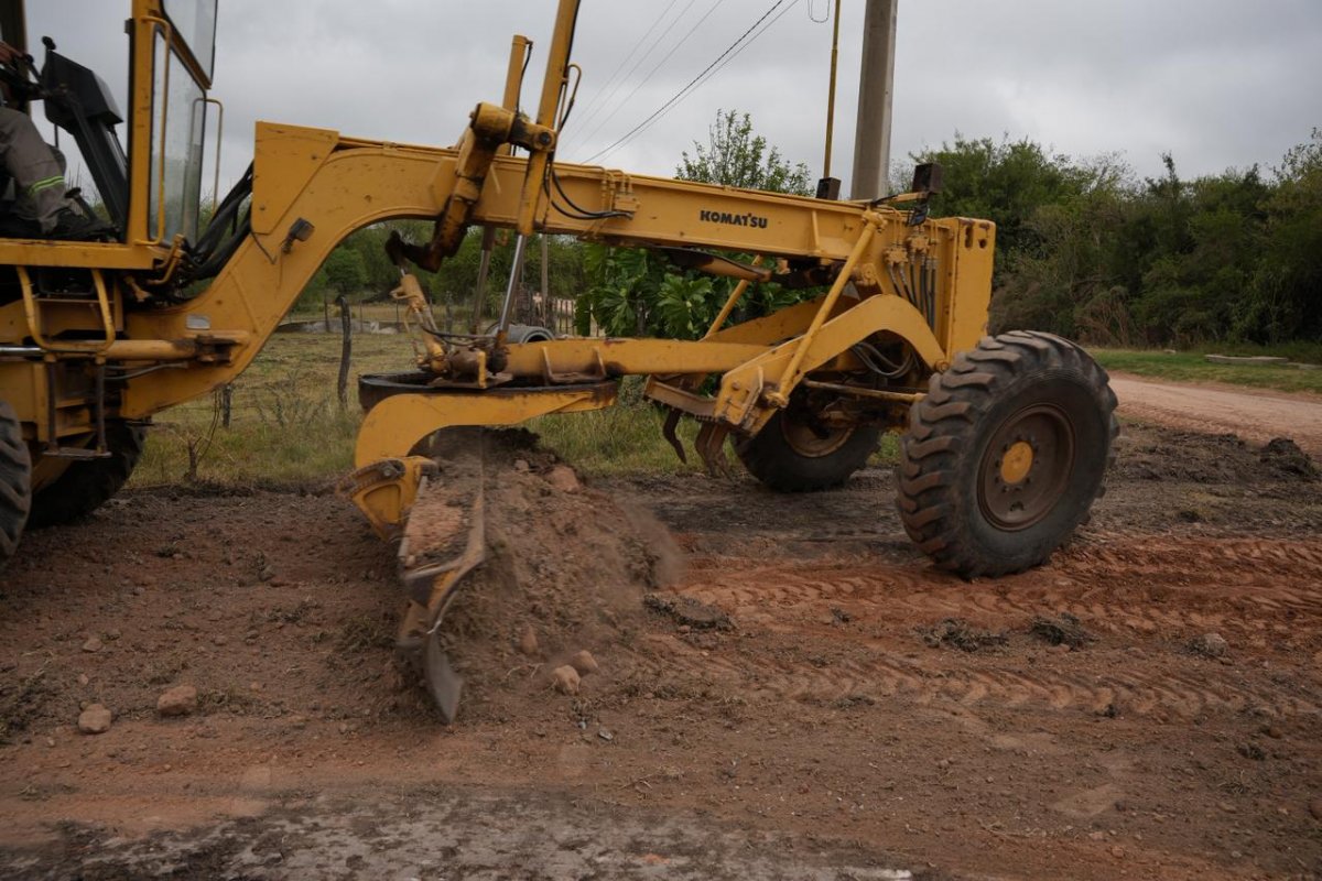 El esquema de trabajo incluyó mantenimiento vial con aportes de materiales, una metodología que permite recuperar superficies, consolidar trazas y extender la vida útil de calles que no cuentan con pavimento.