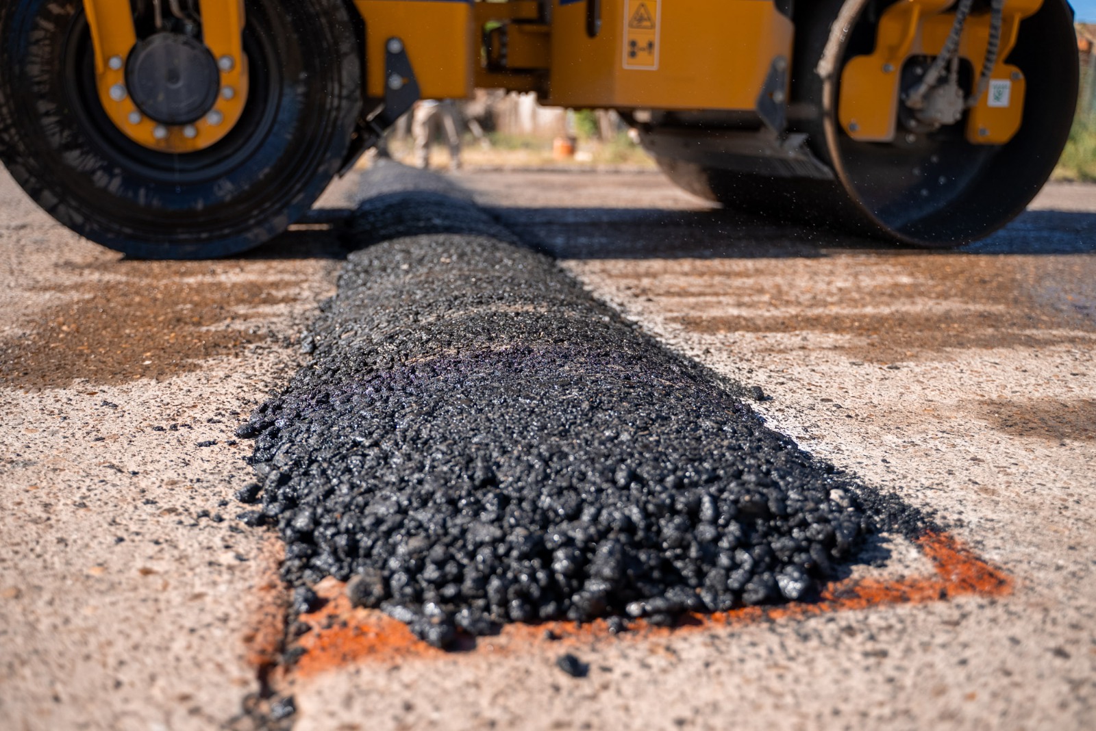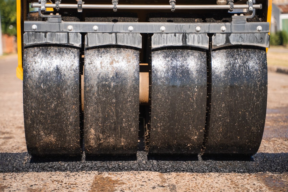 El material se colocó por fajas, con distribución controlada y posterior compactación mecánica mediante rodillo neumático y equipos manuales, lo que asegura una correcta adherencia sobre el pavimento existente y una terminación uniforme.