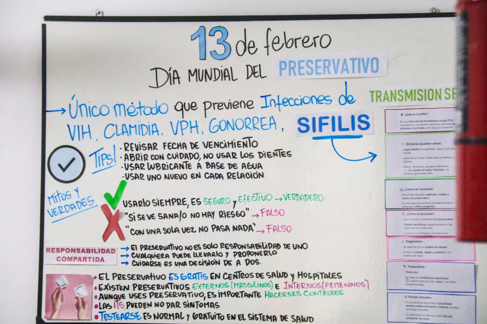 Durante el encuentro, se abordaron aspectos fundamentales para el cuidado de la salud sexual, haciendo hincapié en la importancia del uso del preservativo y en la realización de controles periódicos. En el espacio se explicó qué es la sífilis, cómo se transmite y cuáles son sus principales síntomas, remarcando que en muchos casos puede no presentar manifestaciones visibles, lo que hace fundamental el diagnóstico oportuno.