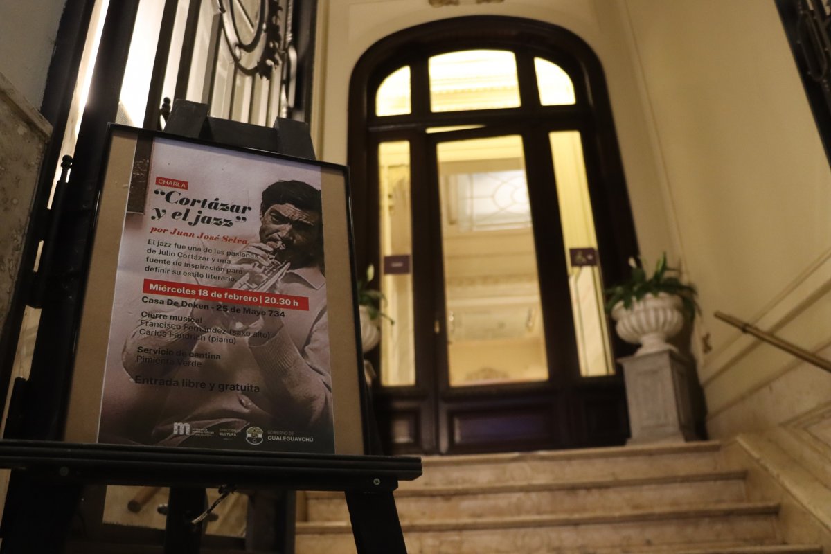 La charla, a cargo de Juan José Selva, propuso un recorrido profundo y sensible por la obra de Julio Cortázar, poniendo el foco en su vínculo con el jazz, sus pasiones musicales y la influencia que este género ejerció sobre su estilo narrativo, su mirada artística y su manera de concebir la literatura. A lo largo del encuentro se abordaron cuentos, reflexiones y fragmentos clave de su obra, mostrando cómo la improvisación, el ritmo y la libertad expresiva del jazz atraviesan su universo creativo.