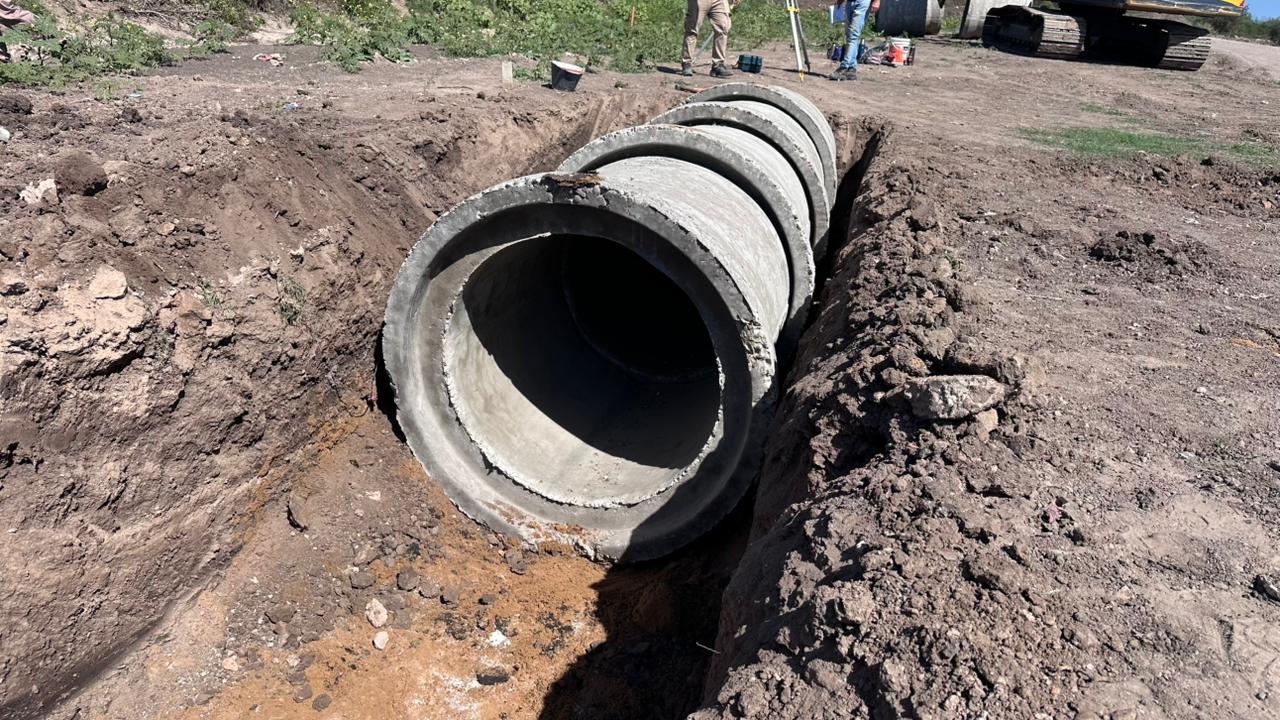 Instalan conductos de gran porte y estructuras hidráulicas en Calle 502 para canalizar excedentes pluviales y garantizar circulación segura en un sector estratégico del norte urbano.