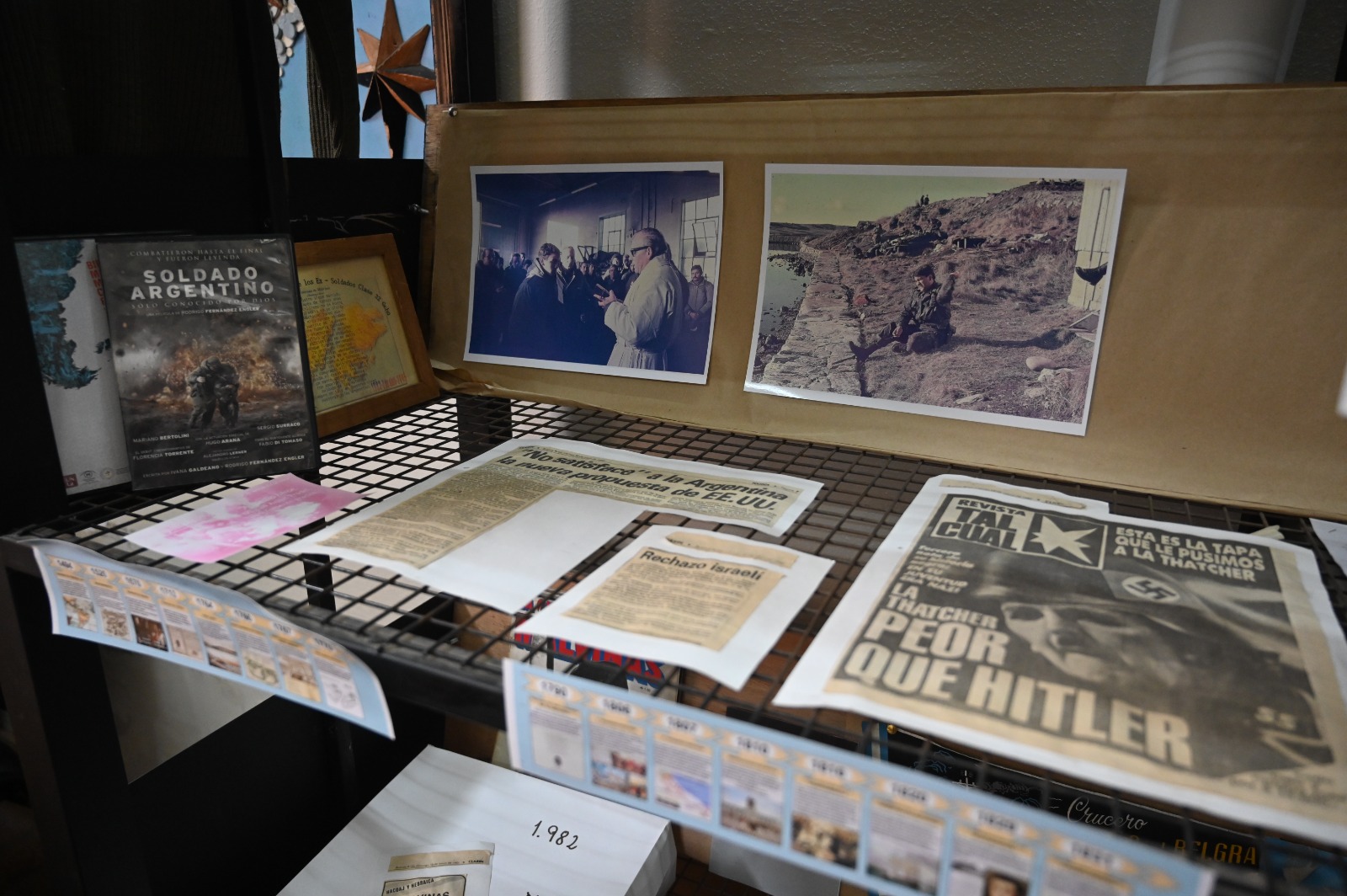 La muestra incluye una galería de imágenes, contenido audiovisual y datos históricos de la época, además de una detallada descripción de los 74 días que duró el conflicto bélico. Además, se exhiben objetos de gran valor donados por excombatientes y familiares, sedimentos del cementerio de Darwin y una colección de libros que enriquecen la experiencia de quienes recorren el espacio.