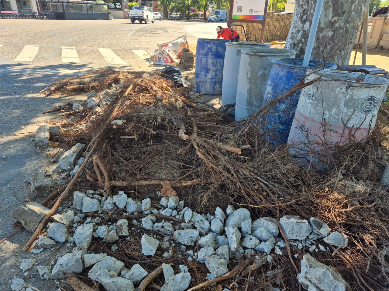 Hasta el momento, las tareas permitieron retirar alrededor de 20 camiones completos de raíces y residuos vegetales acumulados debajo de los adoquines, una muestra del impacto oculto que tenía el deterioro del suelo en estos paseos de alto tránsito.