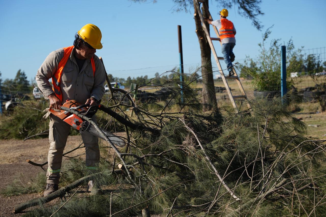 Por otra parte, la Dirección de Espacios Verdes desarrolló trabajos de mantenimiento en sectores no pavimentados, con un corte total de la cobertura vegetal mediante desmalezadora de arrastre de tres puntos, complementado por el accionar de tractores equipados para esa función.
