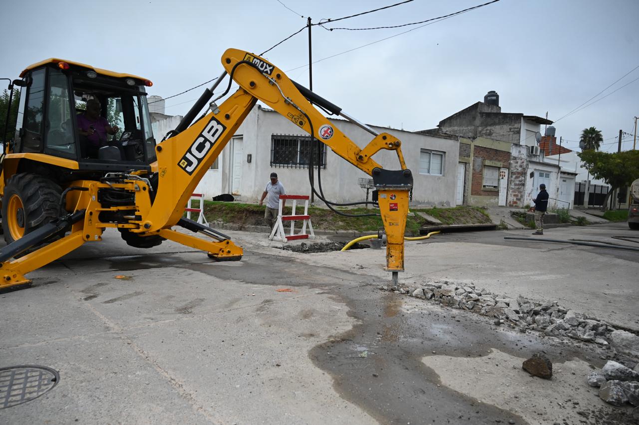 Ante esta situación, el equipo técnico resolvió avanzar con la demolición de seis metros lineales de pavimento para reemplazar el tramo comprometido mediante la colocación de nuevos caños de 600 milímetros de diámetro, una acción que permitirá restituir la sección hidráulica necesaria para el correcto escurrimiento.