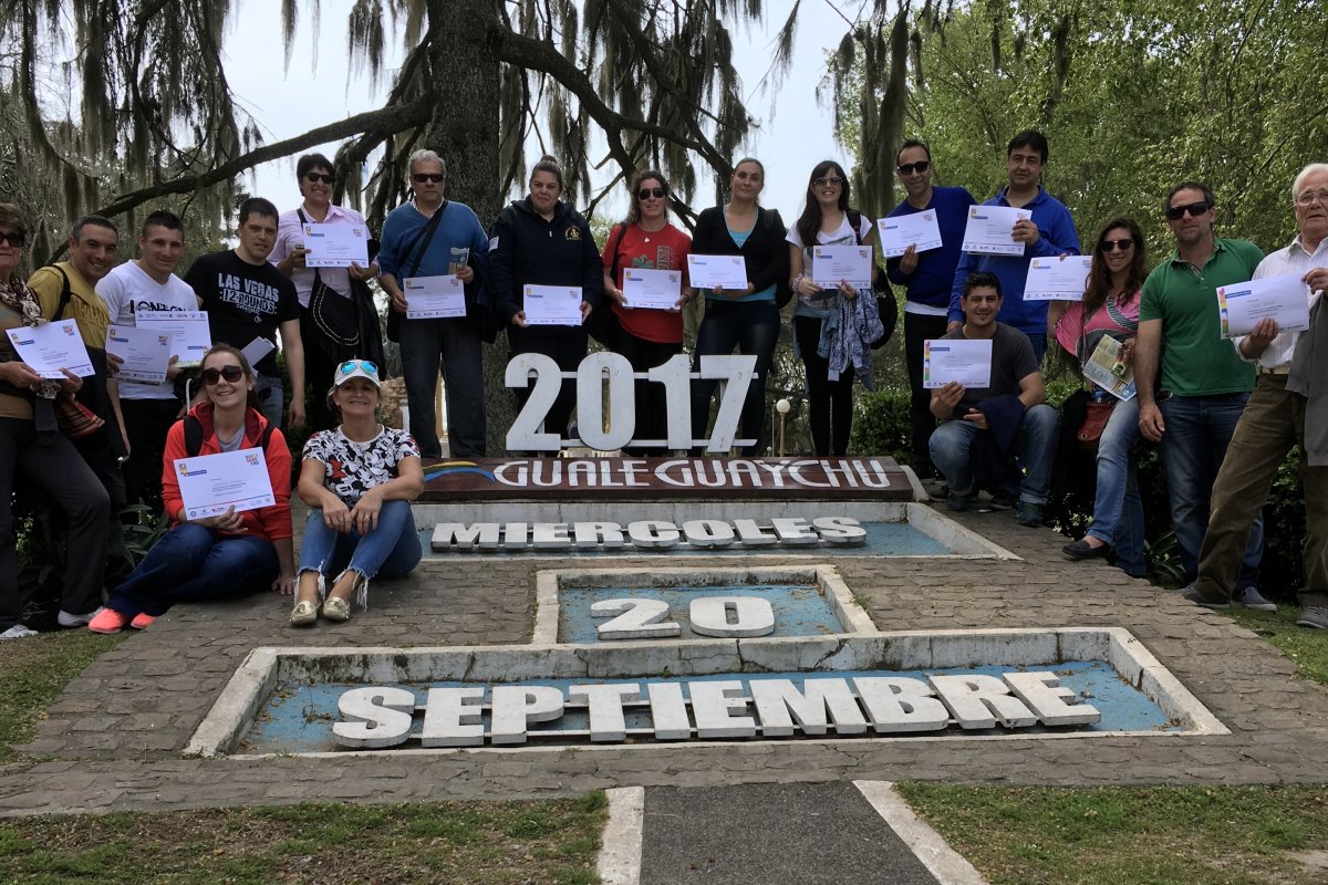 “Disfrutamos de la charla atrapante en el Museo de Haedo con Raúl Ingold, de la maravillosa pintura y su entorno, de la leyenda de Gualeguaychú, la historia del pasado y futuro del Museo Ferroviario. También del Corsódromo, la Costanera del Tiempo, el frigorífico y luego un paseo a bordo en las lanchas con Felipe Tommasi”, detalló Gastón Irazusta y agregó: “Continuamos con las termas del Gualeguaychú y finalizamos en la plaza San Martín con la entrega de certificados y con la alegría de los participantes y su misión de multiplicar lo vivenciado”.