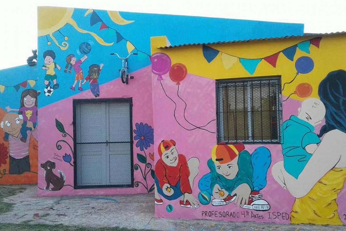 Se inauguró el mural del SUM del barrio Peter realizado por alumnos del ISPED