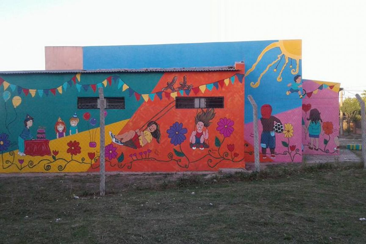 El trabajo artístico llevado adelante por los alumnos de 4to año tuvo una duración de 42 días y contó con el apoyo de la Comisión Vecinal del barrio. Además, se plantaron árboles autóctonos y arbustos nativos en la plaza que rodea al SUM.