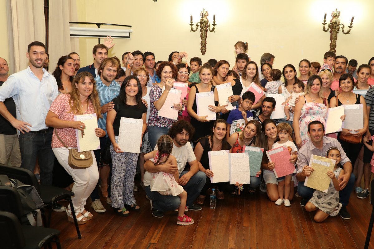40 familias gualeguaychuenses logran así concretar el sueño de la casa propia. En la apertura de este emotivo acto en el que se hizo entrega de las llaves, los planos de la vivienda y de la tenencia precaria, el intendente Dr. Esteban Martín Piaggio expresó "Esta es una fecha muy especial, que nos encuentra trabajando y concretando derechos. Felicitamos a todas la familias por este logro. En materia de viviendas todavía falta mucho, pero sepan que estamos trabajando con todas las herramientas y recursos posibles para acortar esa brecha" y agregó "Desde el municipio, en estos tiempos difíciles acudimos a la creatividad, y llevamos adelante el programa "Hago mi casa", de autoconstrucción solidaria. En un contexto de tantos retrocesos a nivel general, cuando damos un paso para adelante debemos valorarlo"