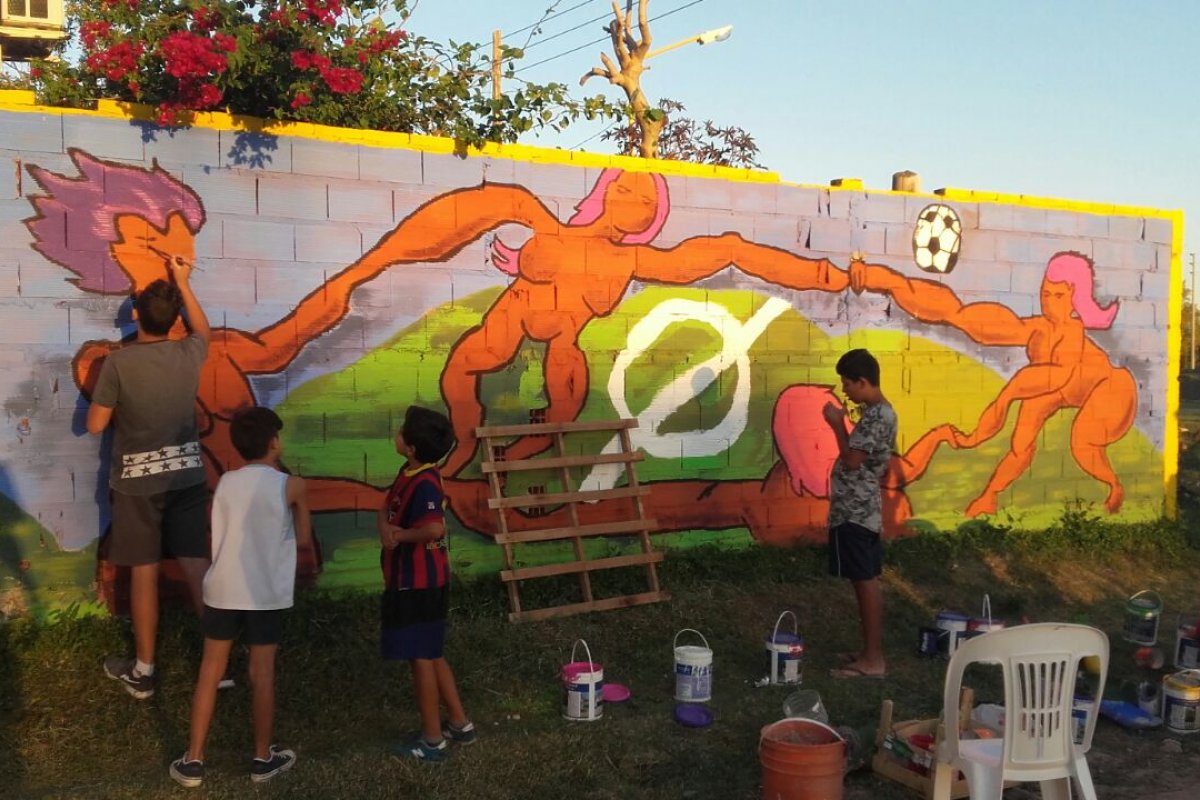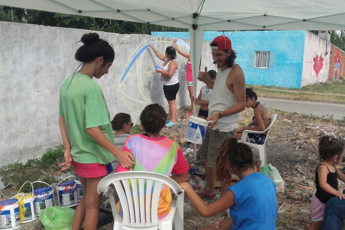 Esta propuesta se lleva adelante en las calles del barrio Munilla. Los adolescentes y los jóvenes se juntan en las esquinas, salen de la escuela, andan en bici y habitan el espacio que propicia el encuentro para el arte. “Es en ese tiempo y en ese espacio que nos juntamos, charlamos, y construimos colectivamente la identidad del barrio”, comentó Yamila Butallo del CAPS. Esta tarea continúa con pinceles, tachos de pintura, paredes que van tomando color, vecinos que se acercan a pintar y otros que prestan la escalera o el balde que hace falta para que la tarea no pierda continuidad.