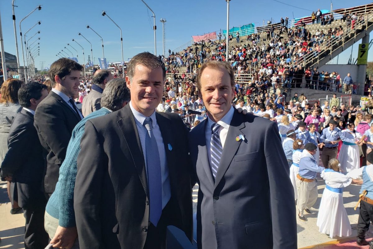Sobre el escenario principal el Intendente Dr. Esteban Martín Piaggio celebró el acto oficial junto al gobernador Gustavo Bordet sellando un momento memorable, siendo la primera vez que un gobernador de la provincia vive nuestra gran fiesta patria.