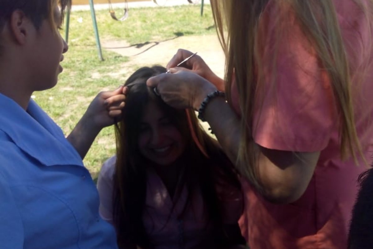 Durante la actividad se invitó a las vecinas ponerse una mechita rosada en símbolo de esta lucha en tanto las alumnas del taller de peluquería trabajaron en ese espacio con la realización teórico práctica de las mechitas rosadas.