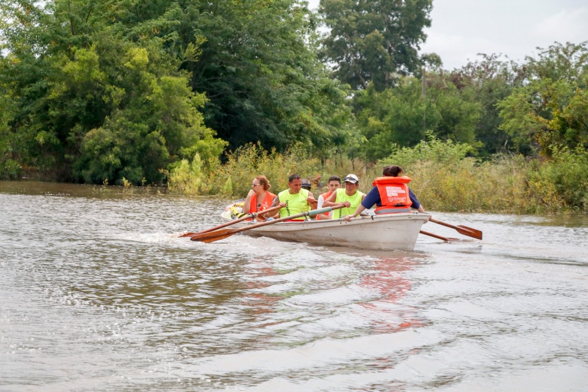 De la misma manera, Pintos comentó que “en simultaneo se realizaron recorridas en conjunto con la dirección de Deportes en canoas por las zonas afectadas como el Camino de la Costa, Camino de la Península, Barrio Munilla, Barrio Pueblo Nuevo, asistiendo a familias afectadas que permanecieron en sus domicilios con alimentos, artículos de limpieza y agua potable” y continuó “con la secretaria de Desarrollo Social y Salud se brindaron en el recorrido control de sanidad de las viviendas, campaña de profilaxis preventivo debido al contacto con el agua”.