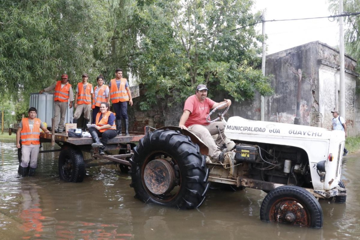 La Municipalidad de Gualeguaychú junto a otras instituciones trabajaron en pos de garantizar a los evacuados de la ciudad la ayuda necesaria para sobrellevar estos días difíciles. Se les garantizó comida, abrigo, techo y salud, todo ello posible gracias a un efectivo operativo de evacuación, organizado y llevado a cabo desde diversas áreas de gobierno. Se asistió diariamente no solo a las familias albergadas en los galpones del puerto, sino que se dispuso un operativo diario de visita a las familias afectadas por el agua en Camino de la Costa, Barrio de Munilla, Pueblo Nuevo y Camino de Península.
