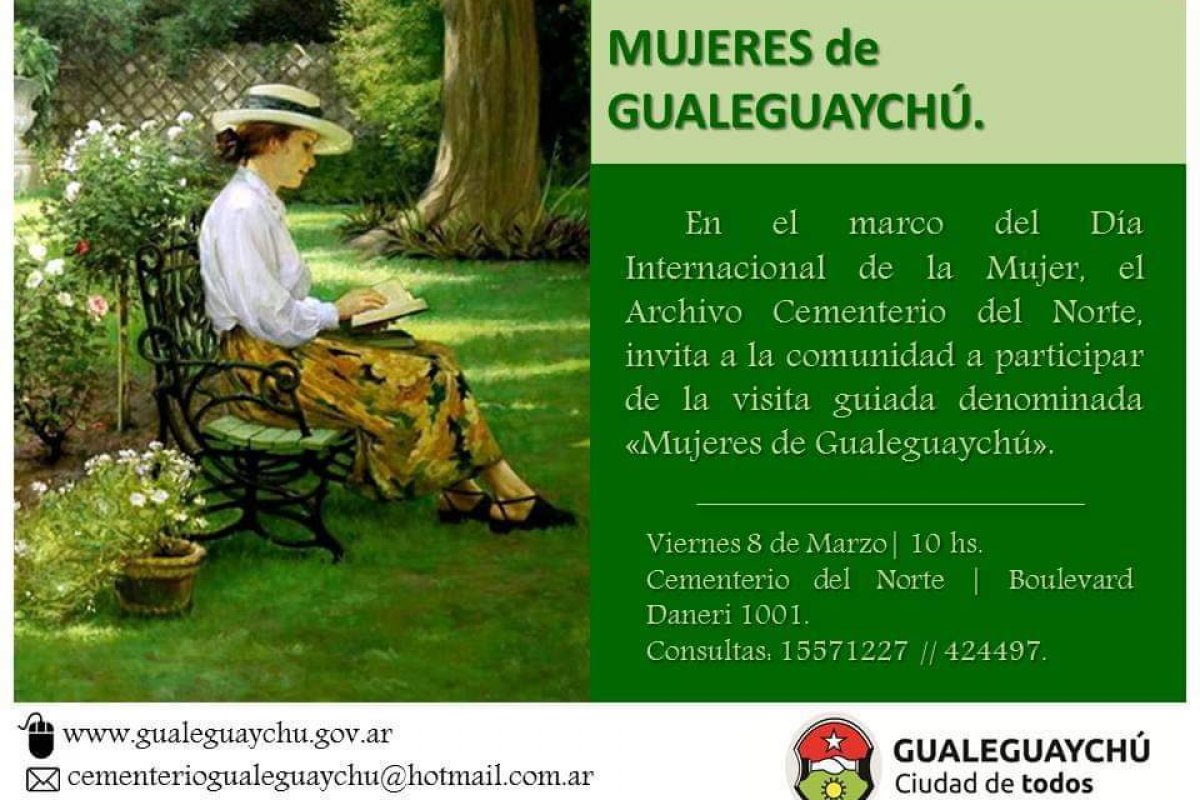 En el marco del Día Internacional de la Mujer, el Archivo del Cementerio Norte, invita a la Comunidad a participar de la visita guiada denominada: “Mujeres de Gualeguaychú”