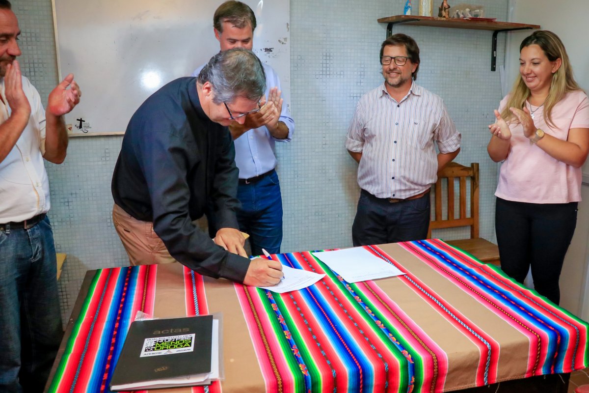 En el convenio, la Municipalidad se compromete a entregar materiales que se utilizarán para la construcción de un Hogar Transitorio, para el trabajo contra las adicciones que realizan desde el lugar. “Coincidimos todos en que es importante reivindicar estas instancias de trabajar en conjunto y generar lazos que en la práctica sigan generando y fortaleciendo las redes, y tenemos el convencimeinto de trabajar desde diferentes lugares para generar una comunidad organizada que verdaderamente de la batalla a los grandes problemas” remarcó el intendente Dr. Esteban Martín Piaggio, que dijo: “La lucha por la inclusión y el desarrollo del empleo es central en la visión que tenemos para generar oportunidades, por eso también hay que generar herramientas de inclusión, a través del deporte, el estudio, la cultura”.